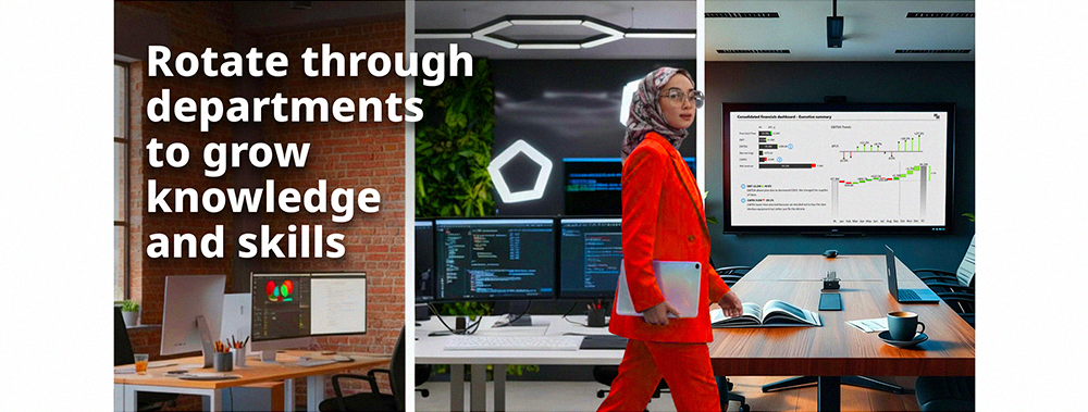 From day one, you’ll have a mentor by your side to help you set your goals, stay on track, and grow in the direction you want. Every specialisation offers its own learning path, designed to help you grow and thrive.