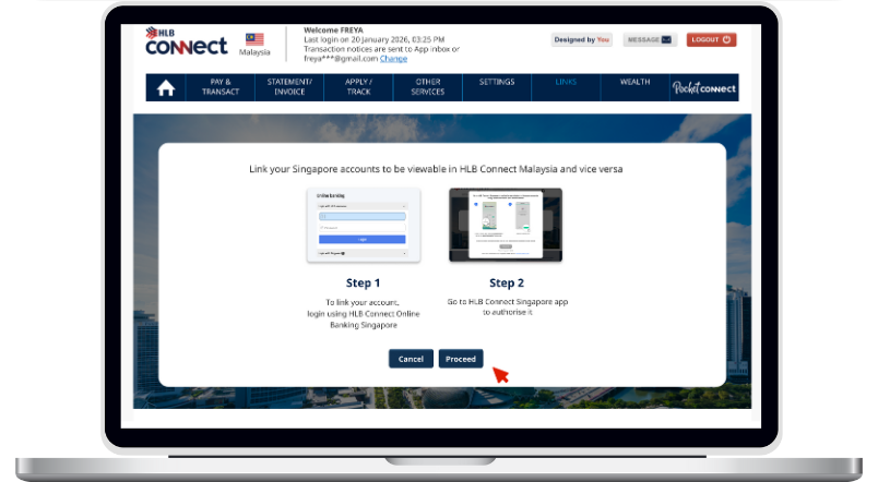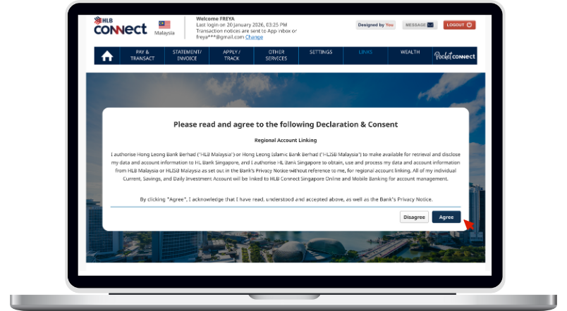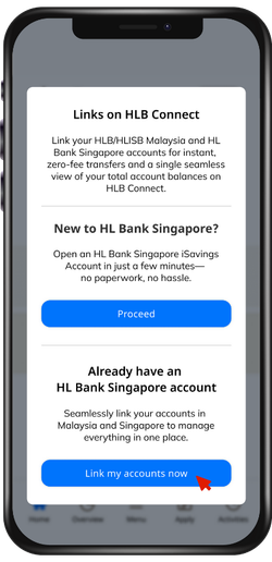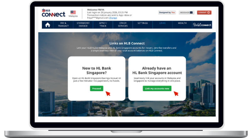 Link your HL Bank SG account through Links on HLB Connect.