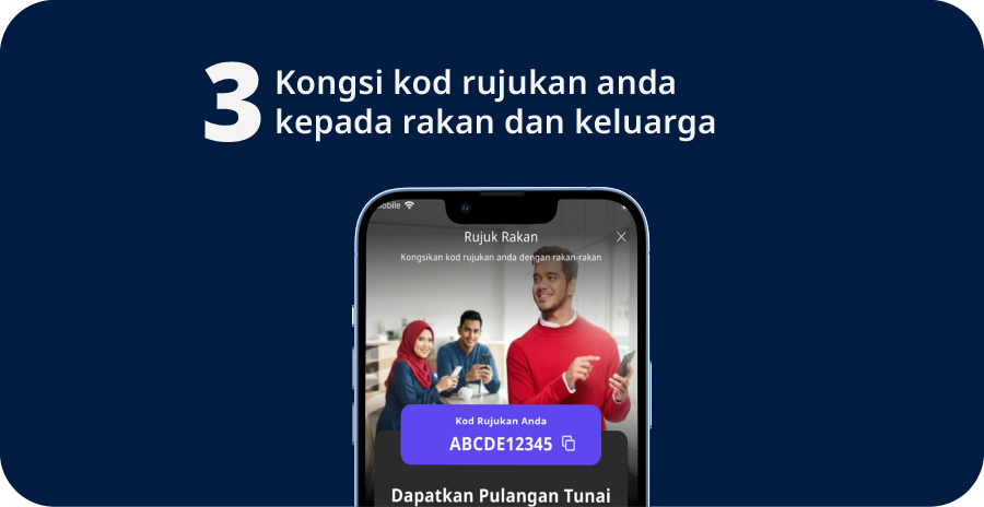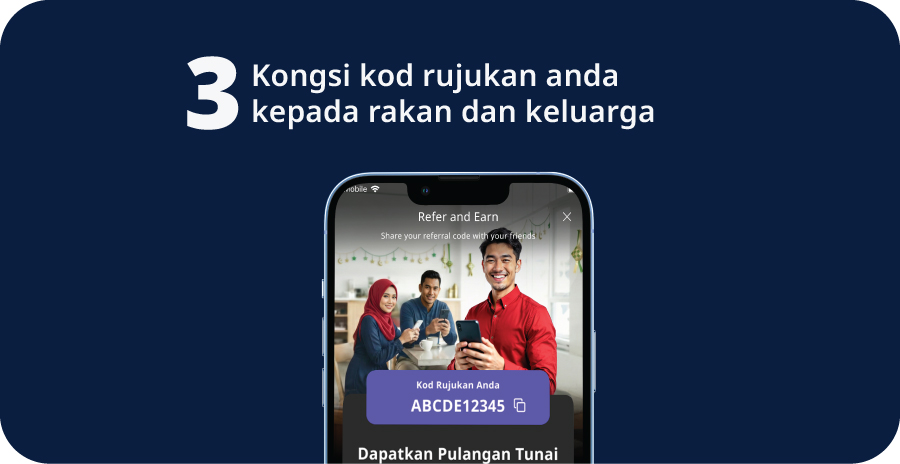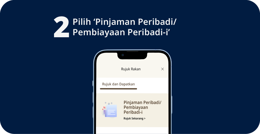 Gunakan kod rujukan unik anda untuk ajak rakan-rakan memohon Pinjaman Peribadi/Pembiayaan Peribadi-i secara online.