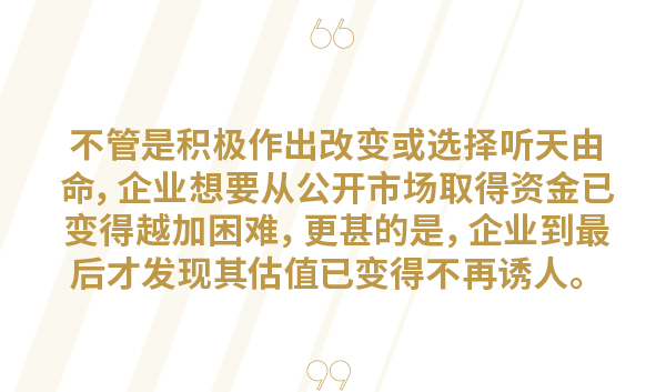 不管是积极作出改变或选择听天由命,企业想要从公开市场取得资金已变得越加困难,更甚的是,企业到最后才发现其估值已变得不再诱人。